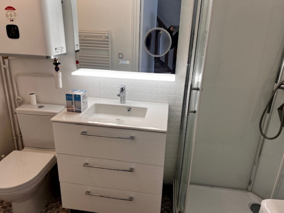 Trouville sur mer, à 2 pas de la gare, agréable appartement de 2-3 pièces avec balcon sud-ouest sur la rivière..une vue somptueuse en centre ville. L'appartement comprenant au 5 ème : entrée séjour avec kitchenette et balcon, salle d'eau avec wc, à l'étage, mezzanine et une chambre. cave.Appartement entièrement refait à neuf!!